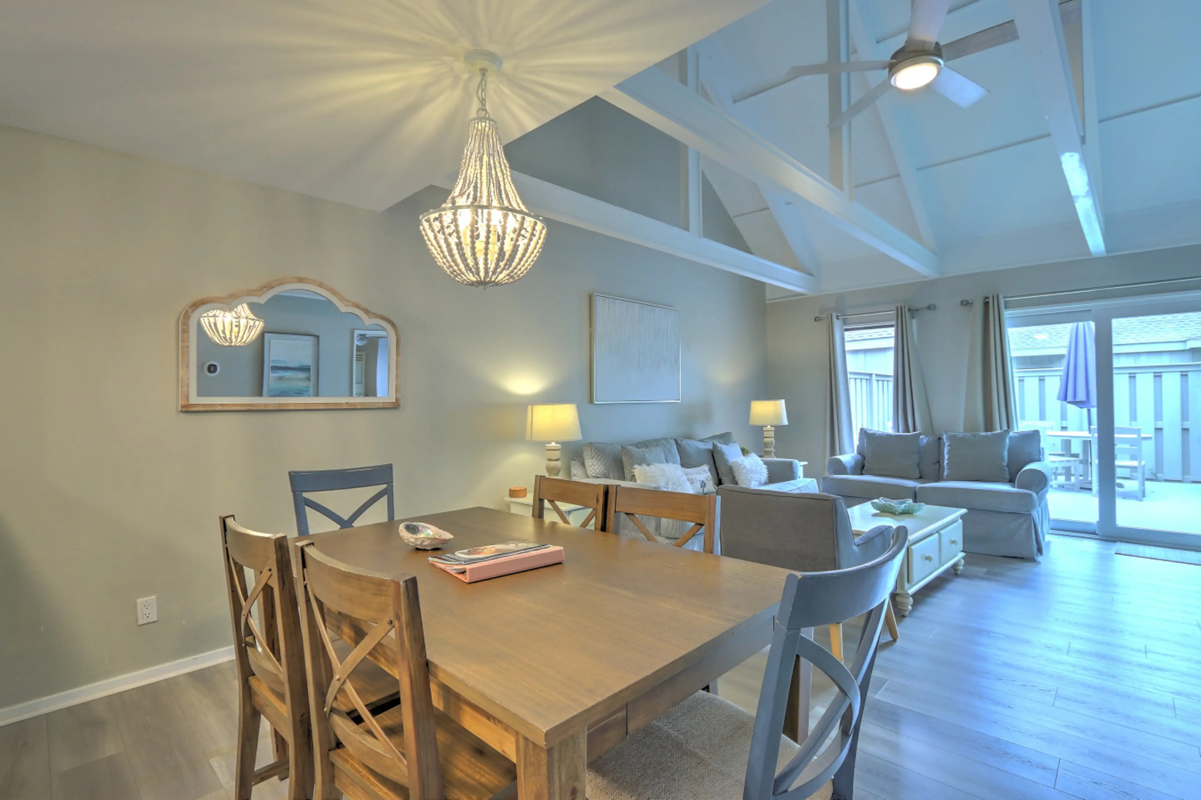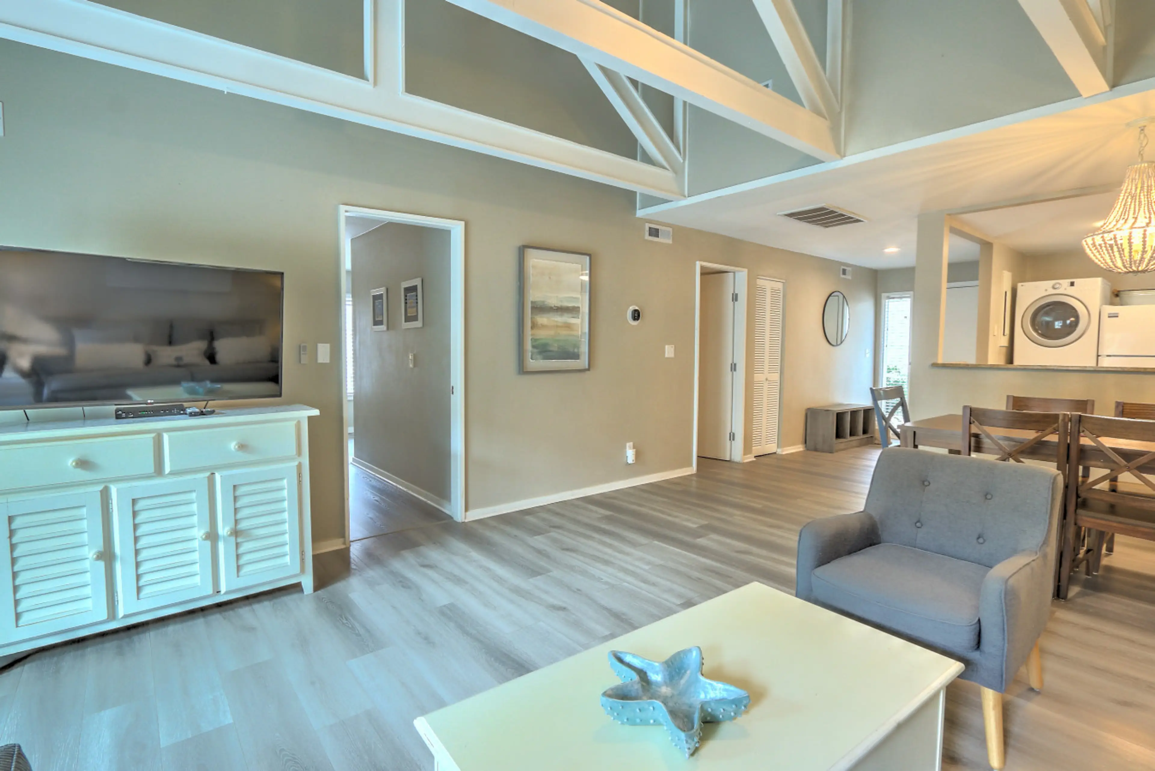 The place was clean and ready for when we arrived. The WiFi worked great as my wife and I worked remotely in the morning and vacationed in the afternoon. We cooked almost all our dinners in the condo, several using the outdoor grill. The location is great, easy walk to the beach, easy walk to Shelter Cove. Very dog friendly. Our pup met so many new friends during our stay. Very quiet - single level and no upstairs neighbors.