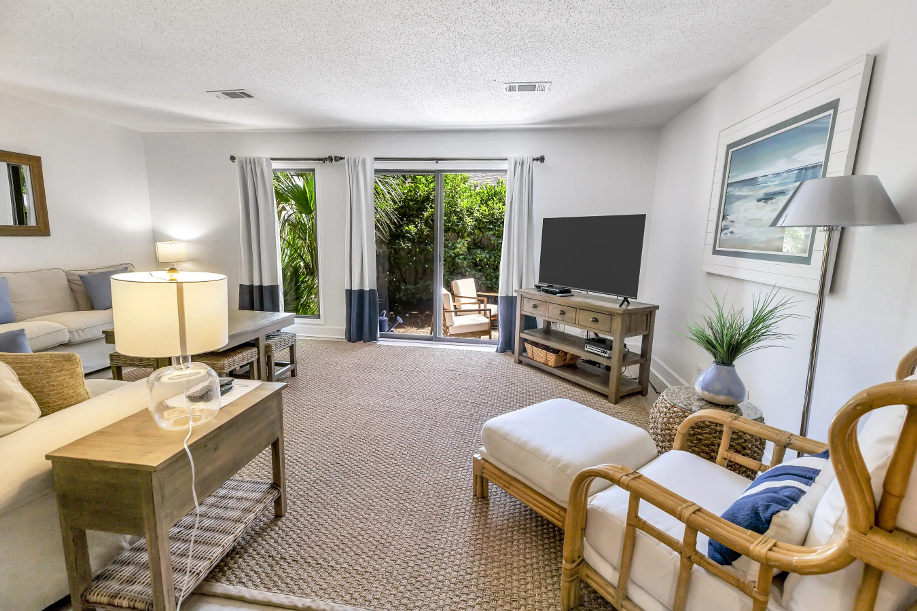 This Palmetto Dunes villa enjoys a prime location - amongst all of the Queens Grant villas, it's in the section closest to the beach (within walking distance) and the shared outdoor swimming pool. Golf, shops, and restaurants await you as well! Golfers can practice their swing at the Robert Trent Jo...